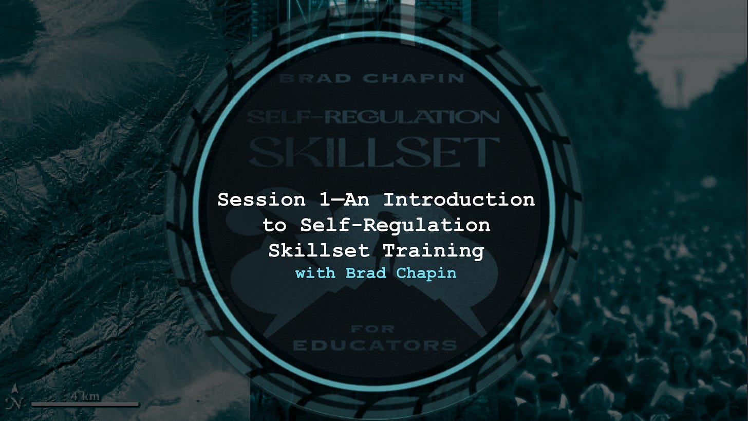 Session 1 of Self-Regulation Skillset Training Program with Brad Chapin is available on TGW website for paid subscribers and participants. Please check it out! And consider ordering a copy of the Self-Regulation Skillset for Educators journal here. Session 2 through 8 will be out shortly!
