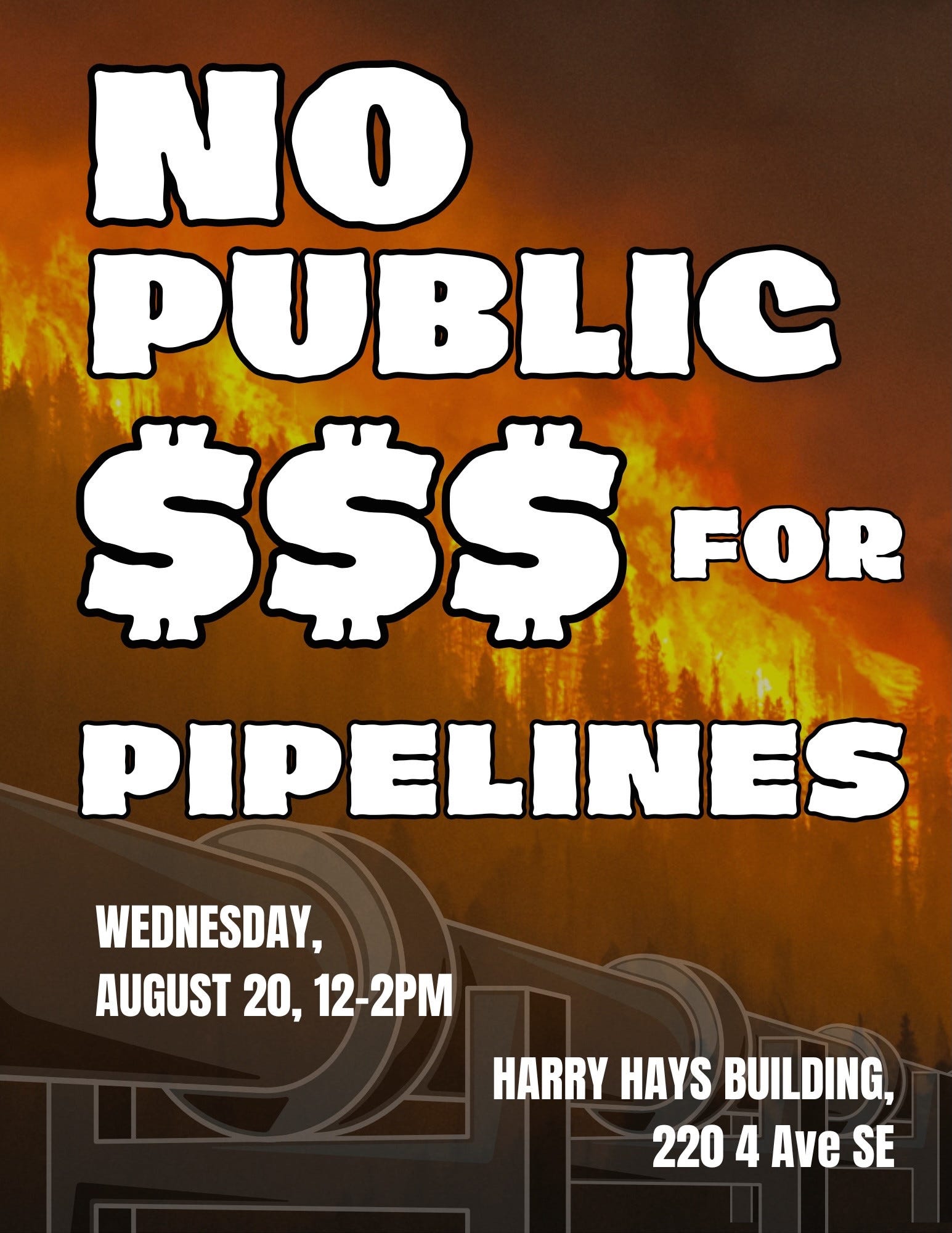 Led by members of the Calgary Climate Hub, For Our Kids, and the Concerned Calgarians on Climate Change (4C), a rally against public dollars being put towards fossil fuel development (pipelines or carbon capture and storage) will be held on Wednesday, August 20th from 12 to 2 pm MST at the Harry Hays Building, downtown Calgary. Let the Federal Government know that you are following the plot. A rapid fossil fuel phase down is required, no more expansion with public dollars!